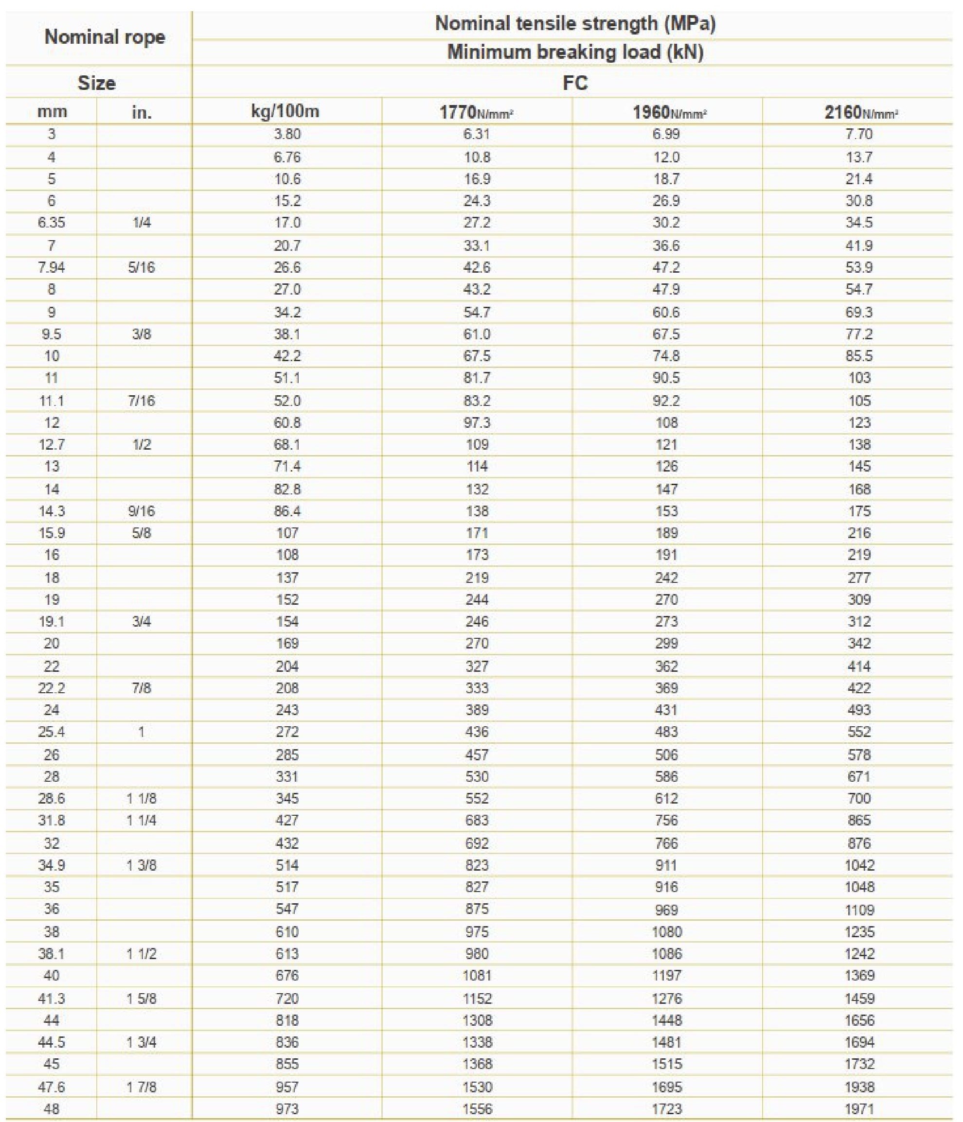 - +FC: Cáp có lõi sợi thủy tinh (Fiber Core) hoặc lõi sợi tổng hợp (Fiber Core) để tăng cường độ bền và độ ổn định.